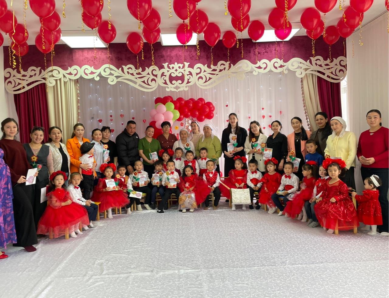 Мерекелік кештің ең әсерлі әрі жүрекке жылы тиген сәті соңында орын алды. Бүлдіршіндер өз қолдарымен жасаған ашық хаттары мен гүлдерін аналарына табыстады. Бұл сыйлықтардың әрқайсысында бала махаббаты мен шынайы ықыласы жатыр еді. Сол сәтте аналардың көзінен қуаныш пен толқыныстың ұшқыны байқалды.