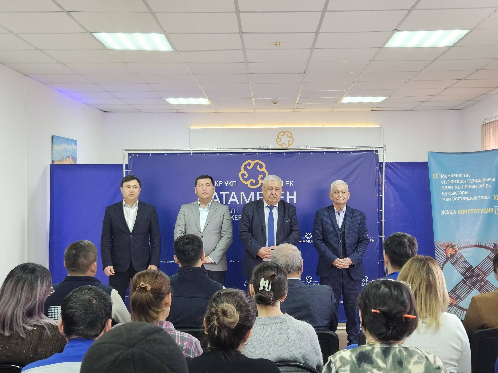 «Әділетті және Прогрессивті Қазақстанның Халықтық Конституциясы үшін!» коалициясының аумақтық мүшелері Өркен Исмаил, Қабілеш Бекішев, Абдумомын Алдияров, Біржан Өтебай, Азамат Қали және Бекзатхан Бауыржанұлы аудандық газ тарату мекемесінің қызметкерлерімен кездесу өткізді.
